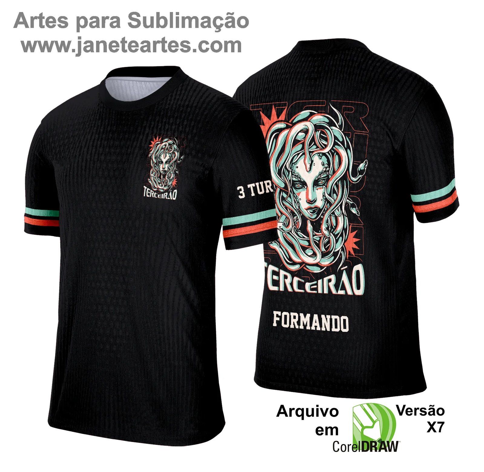 Esse design é perfeito para: usar em festas de formatura, encontros de turma, eventos escolares ou como presente personalizado para professores e colegas. A Medusa traz uma aura imponente e regida pela mitologia, ideal para diferenciar sua camisa do Terceirão.Dicas para combinar sua camisa