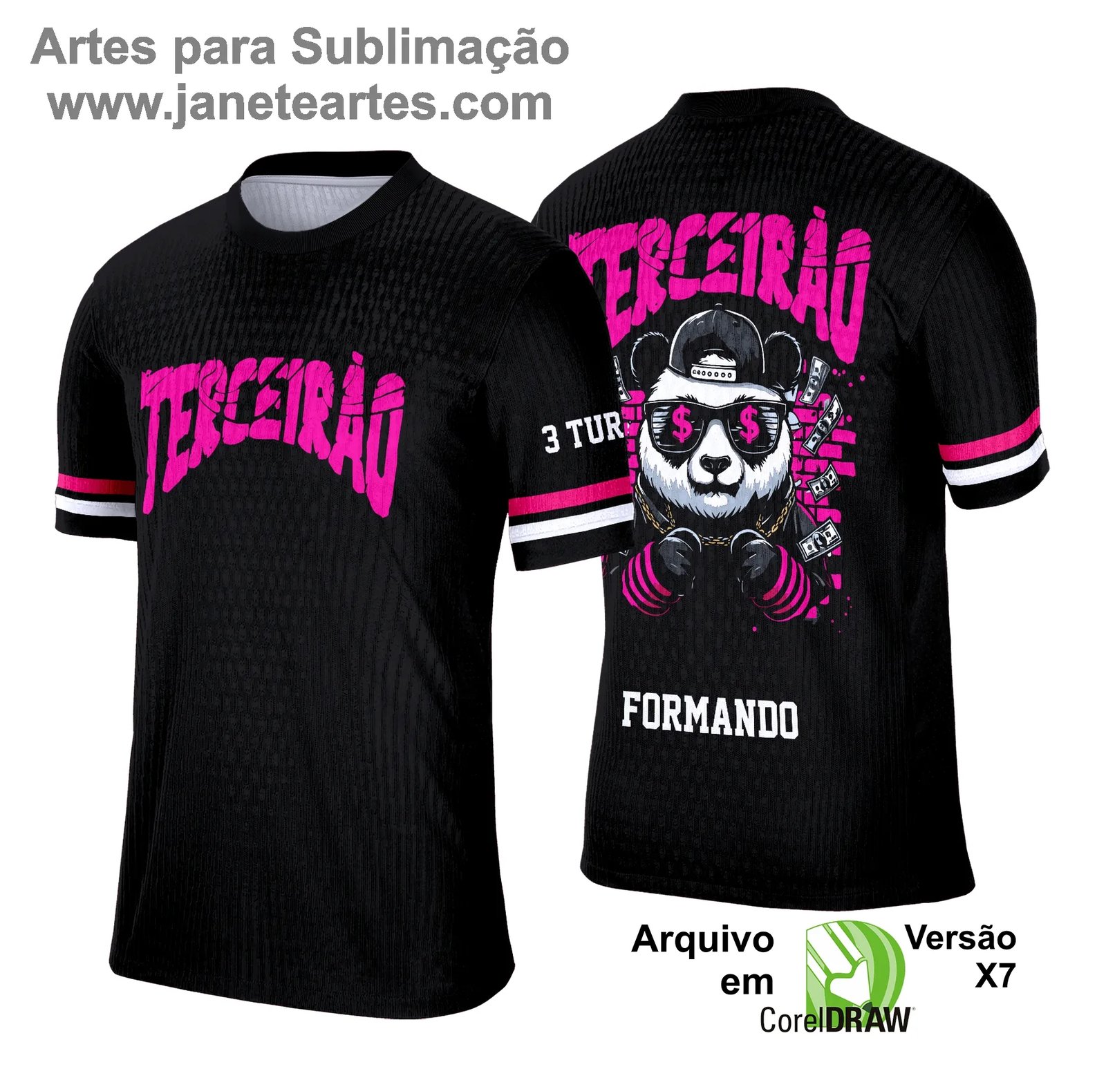 Com o Arte Terceirão Panda Estilo Único, você tem em mãos uma arte que vai além da estampa. Ela carrega significado, identificação e traz um visual moderno que vai unir sua turma para sempre. Aproveite para personalizar do seu jeito e faça seu Terceirão inesquecível!