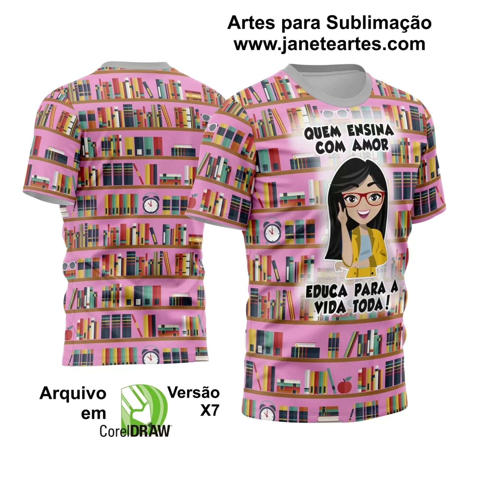 Educação com Estilo: Arte Vetor em Camisas para Professoras 2024 Modelo 01 - Janete Artes