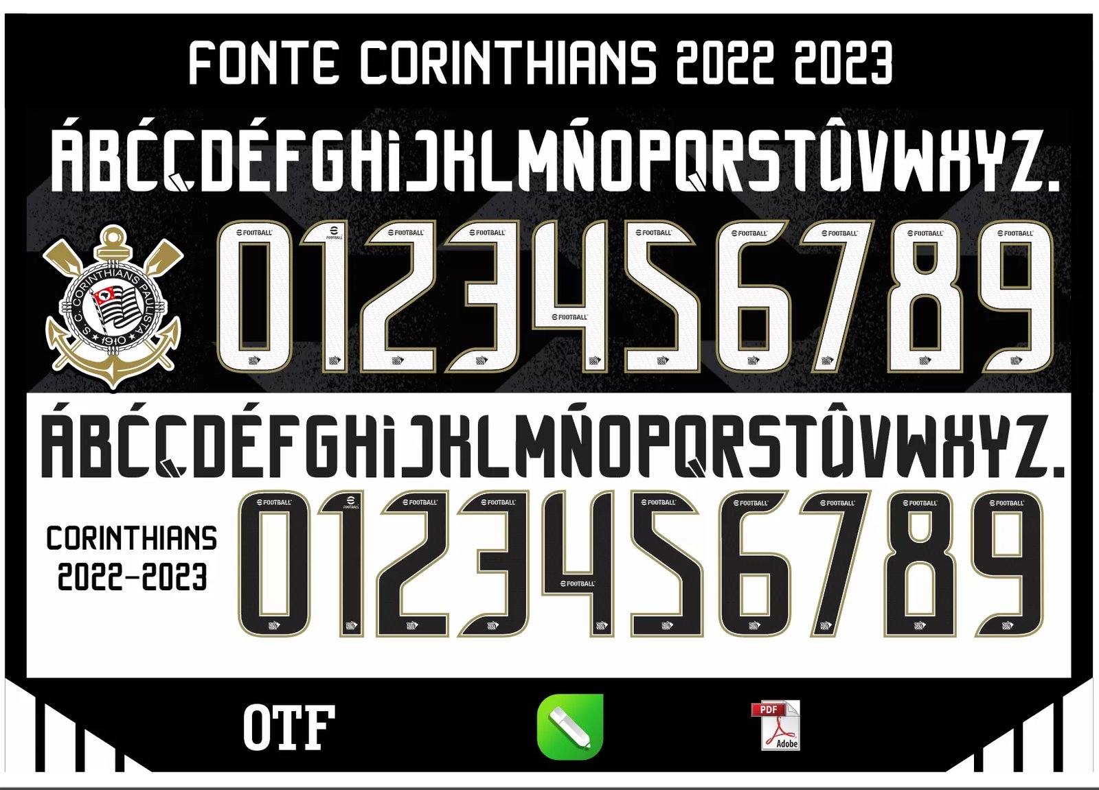 Atenção: Este é um produto digital! Adquirindo a Fonte Corinthians 2022 - 2023, você receberá um arquivo no formato CDR (.cdr x7), TTF e PDF por e-mail. Ele também ficará disponível para download na área do cliente em nosso site após a confirmação do pagamento.