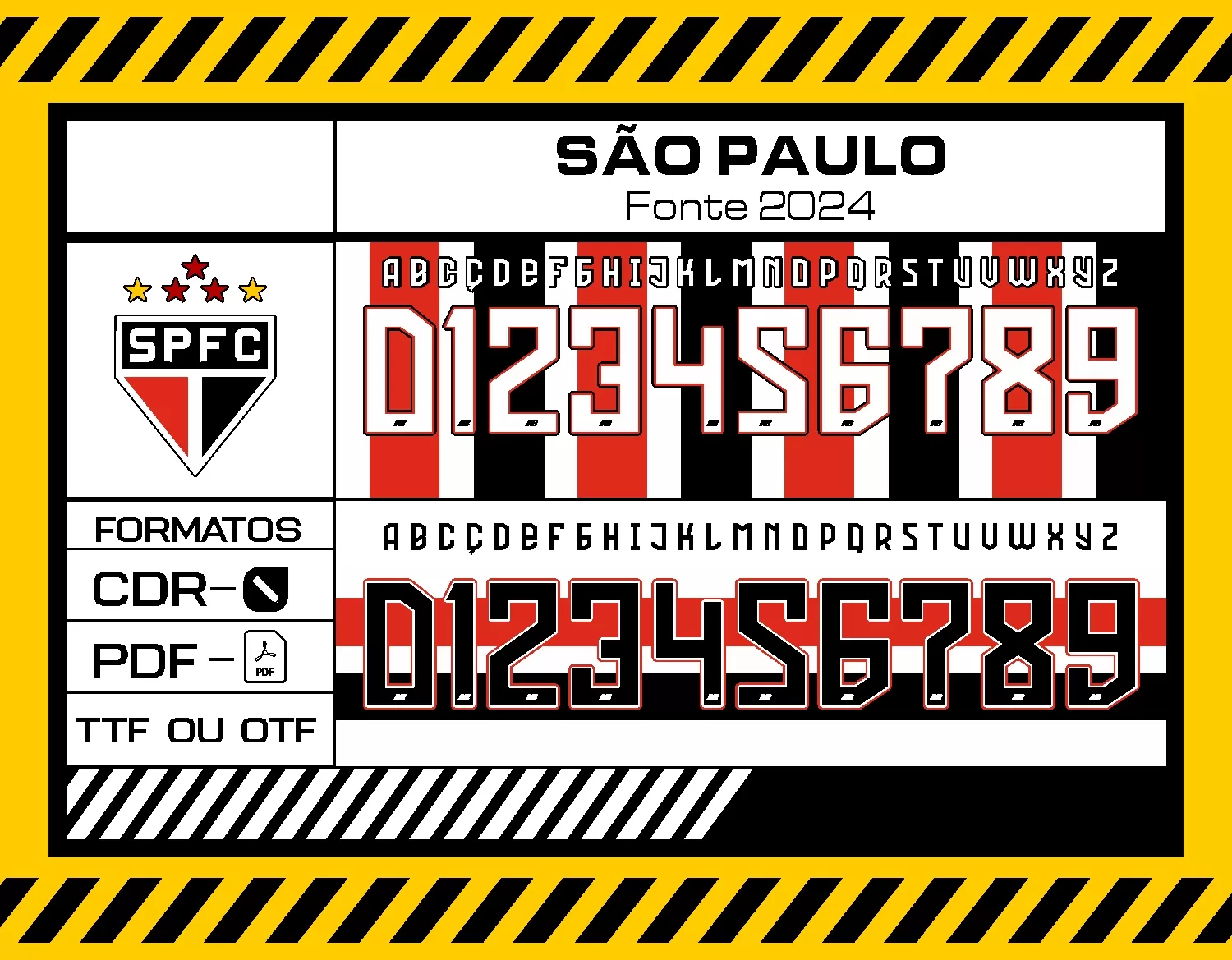 Atenção: Este é um produto digital! Adquirindo a Fonte São Paulo 2024, você receberá um arquivo no formato CDR (.cdr x7), TTF e PDF por e-mail. Ele também ficará disponível para download na área do cliente em nosso site após a confirmação do pagamento.