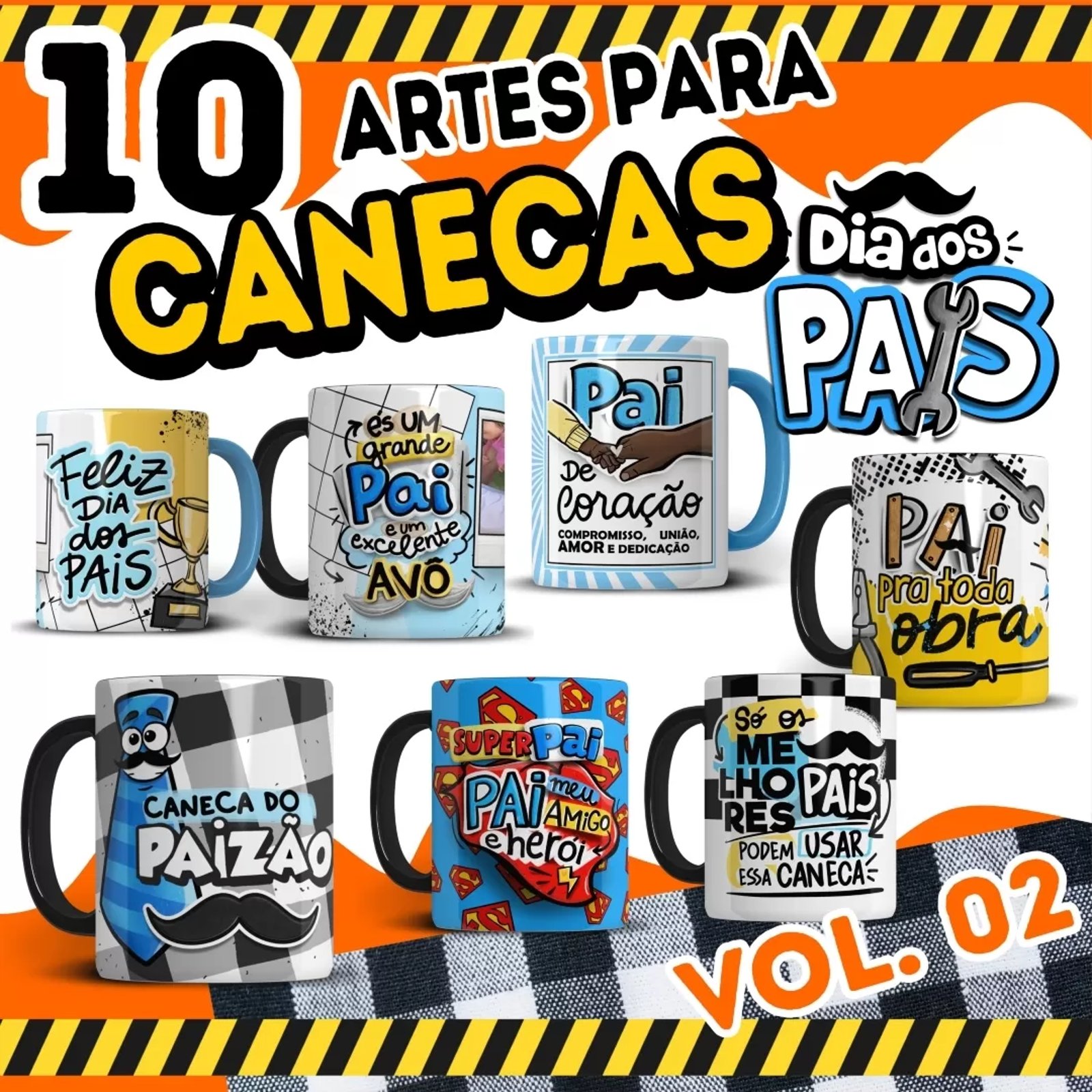 Kit 10 Artes Para Canecas Dia Dos Pais 2023 PNG Vol 02