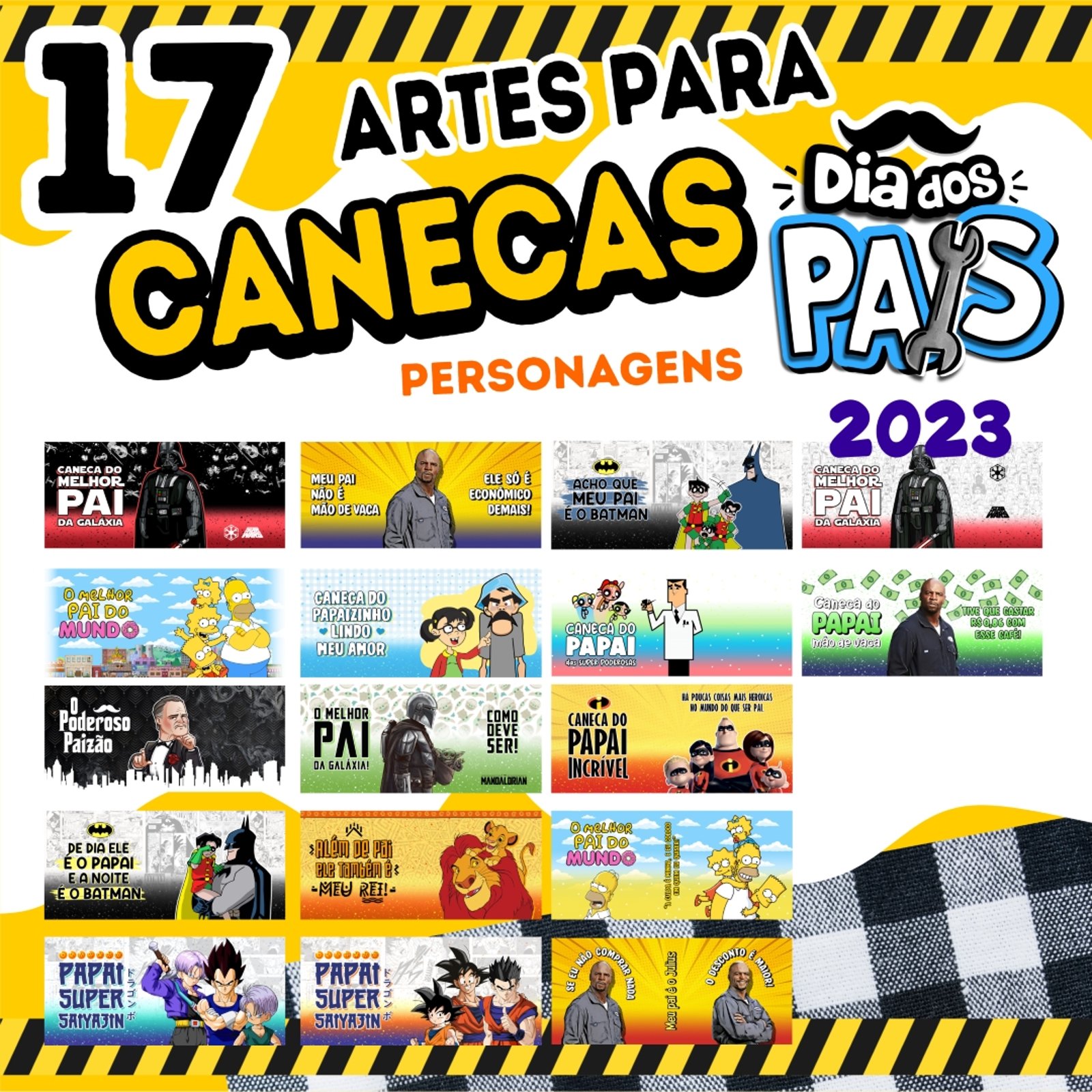 Kit 17 Artes Para Canecas Dia dos Pais 2023 Personagens
