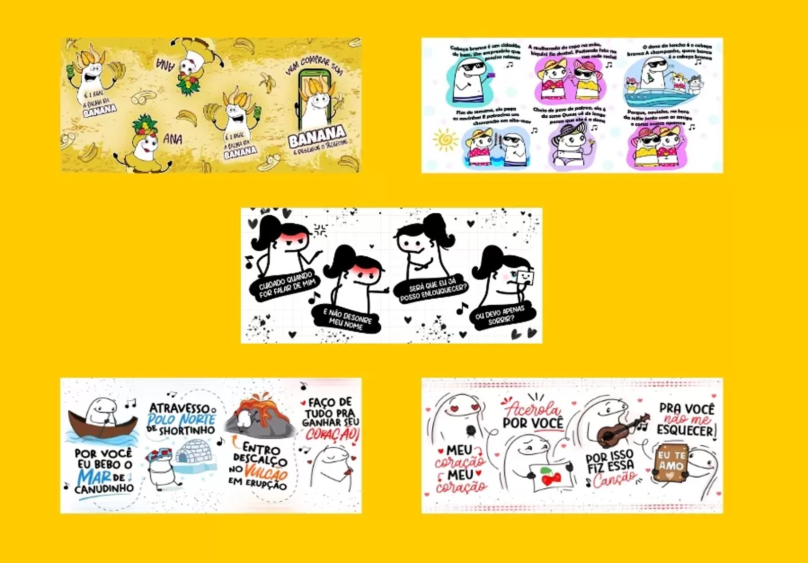 Kit 5 Artes para Caneca Flork Musica Frases Namorados