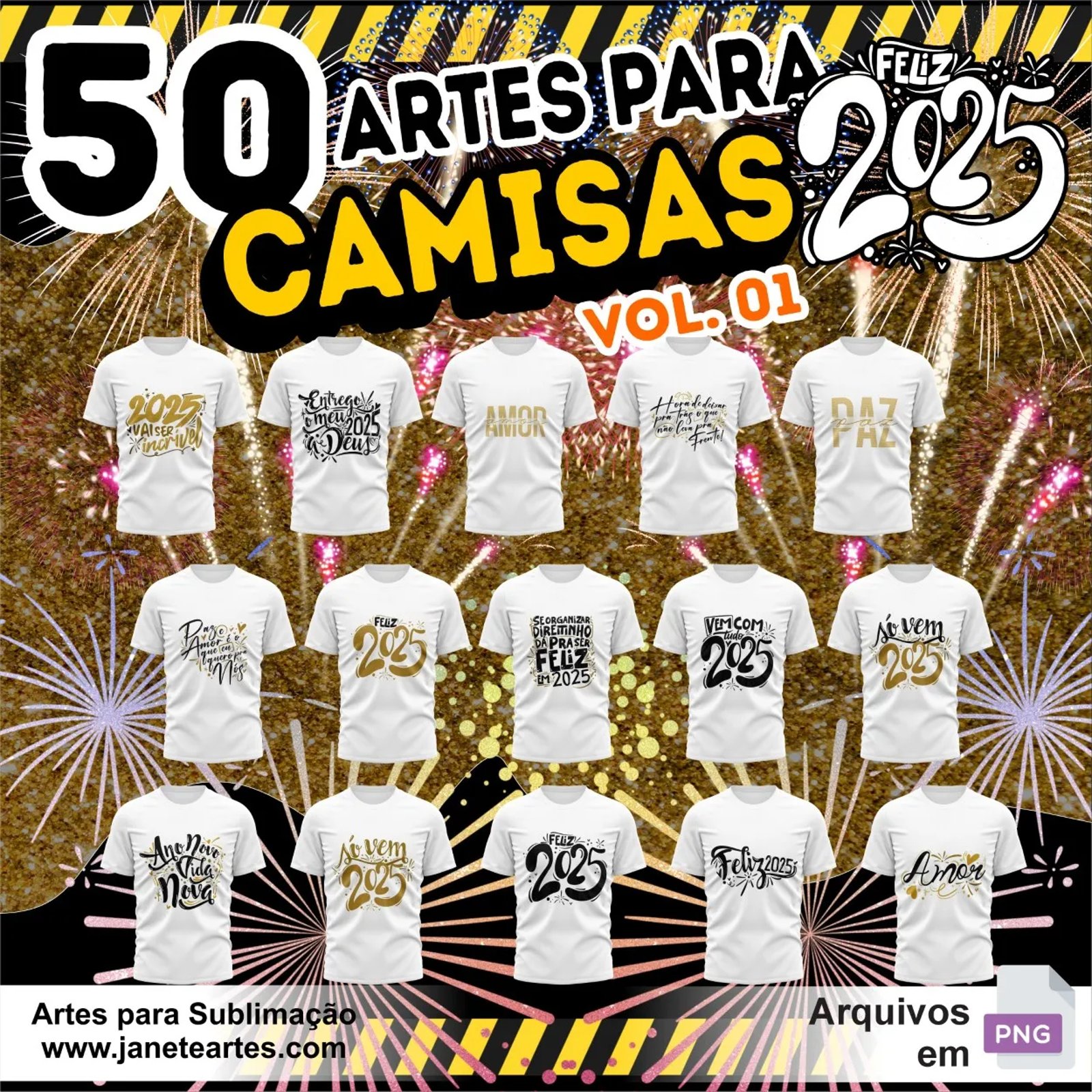 Kit 50 Estampas Camisa de Reveillon 2025 PNG