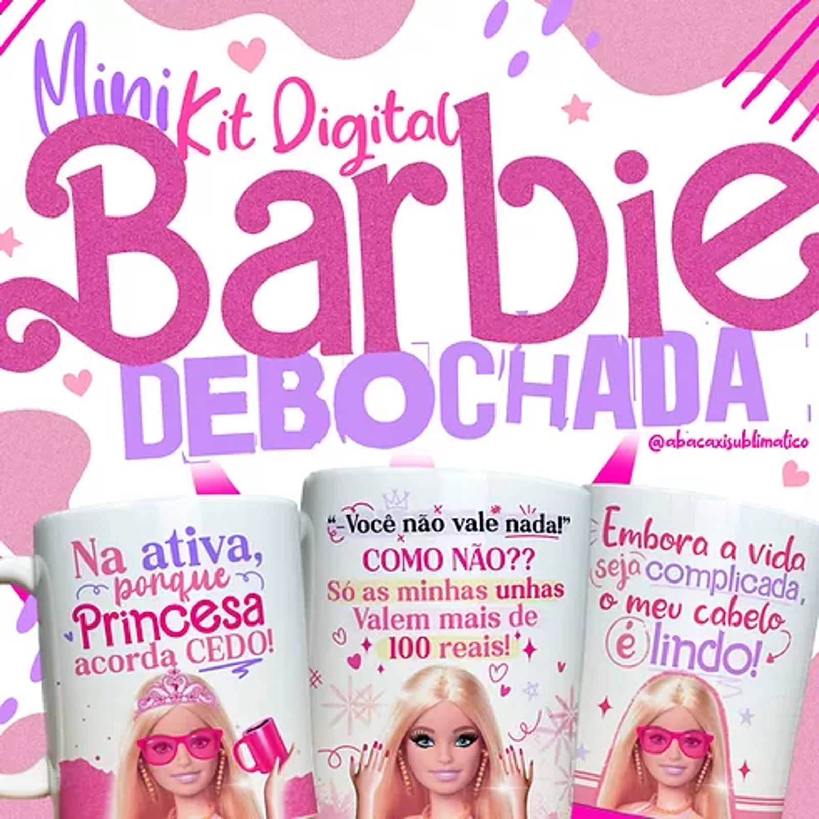 E lembre-se, este é um arquivo digital que será enviado para você por e-mail ou WhatsApp logo após a confirmação do pagamento. Não perca tempo e adquira já o seu Kit de 6 Artes Para Canecas Barbie Debochada 2023!