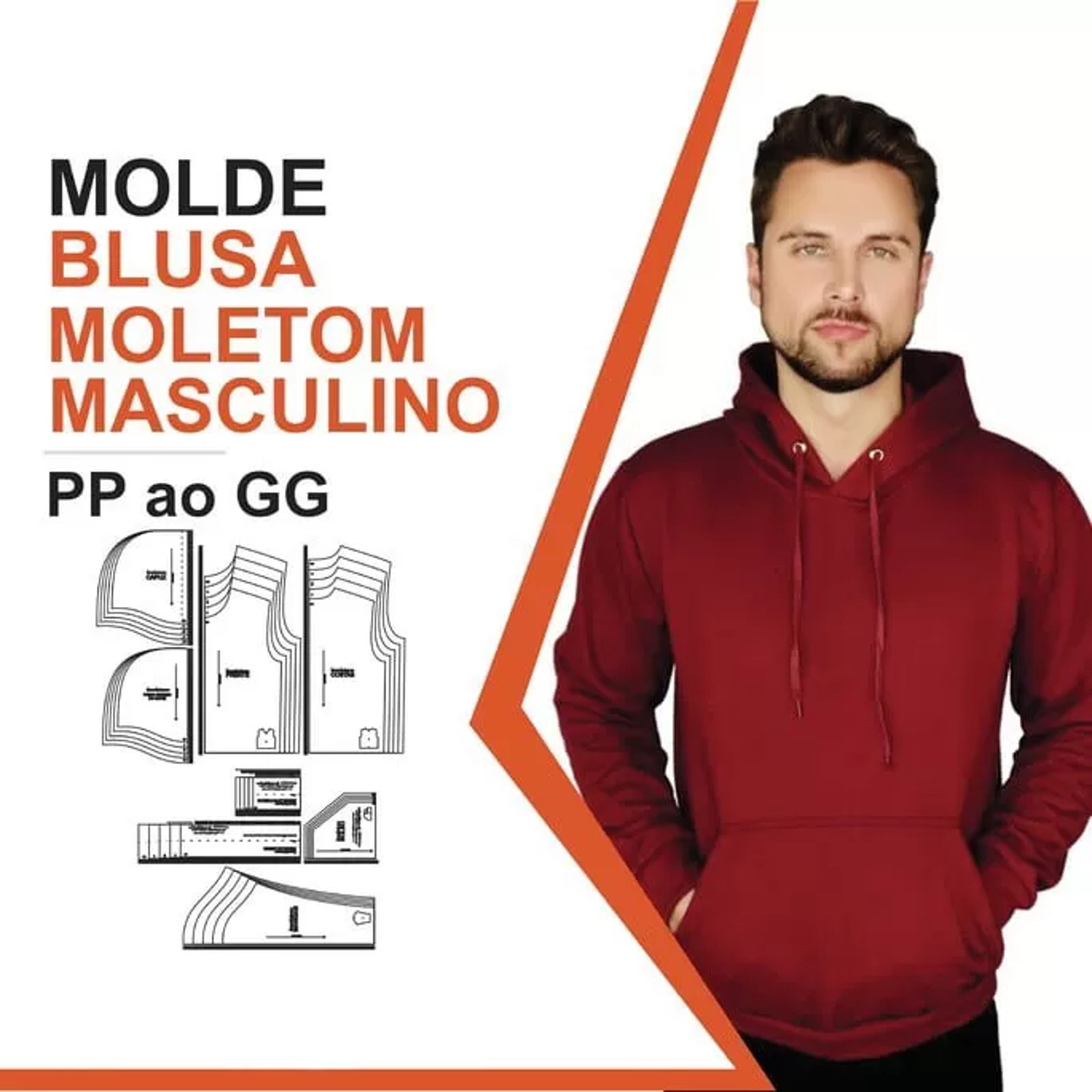 Molde de Costura Para Imprimir - CAMISETA MOLETOM CAPUZ (PP - GG)
