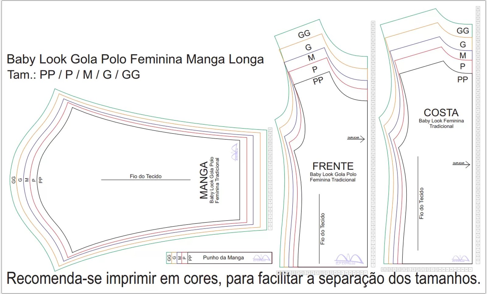 Molde de Costura Para Imprimir Camiseta - 06 - Baby Look Tradicional Manga Longa (PP ao GG)