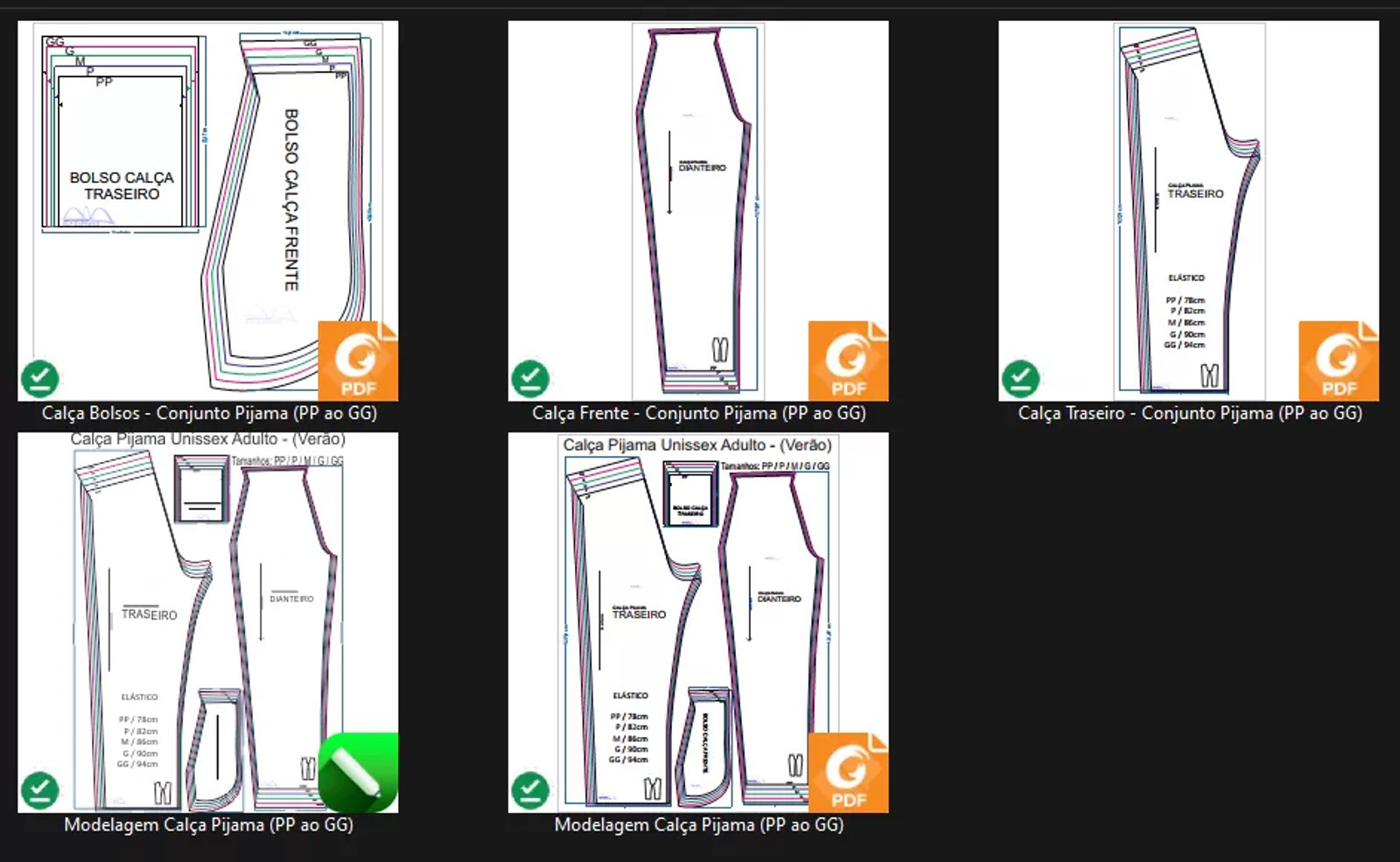 Molde de Costura Para Imprimir Camiseta - 08 - Calça de Pijama Unissex _Verão_ (PP ao GG)