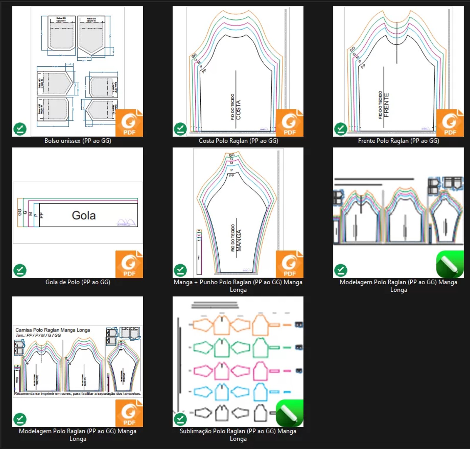 Molde de Costura Para Imprimir Camiseta - 13 - Polo Raglan (PP ao GG) Manga Longa