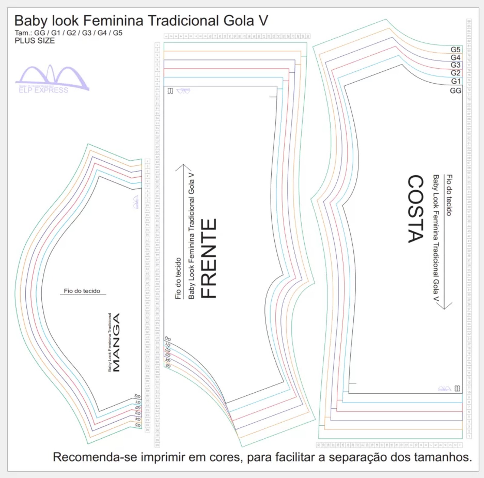 Molde de Costura Para Imprimir Camiseta - 15 - Baby Look Tradicional Gola V (GG ao G5) ok