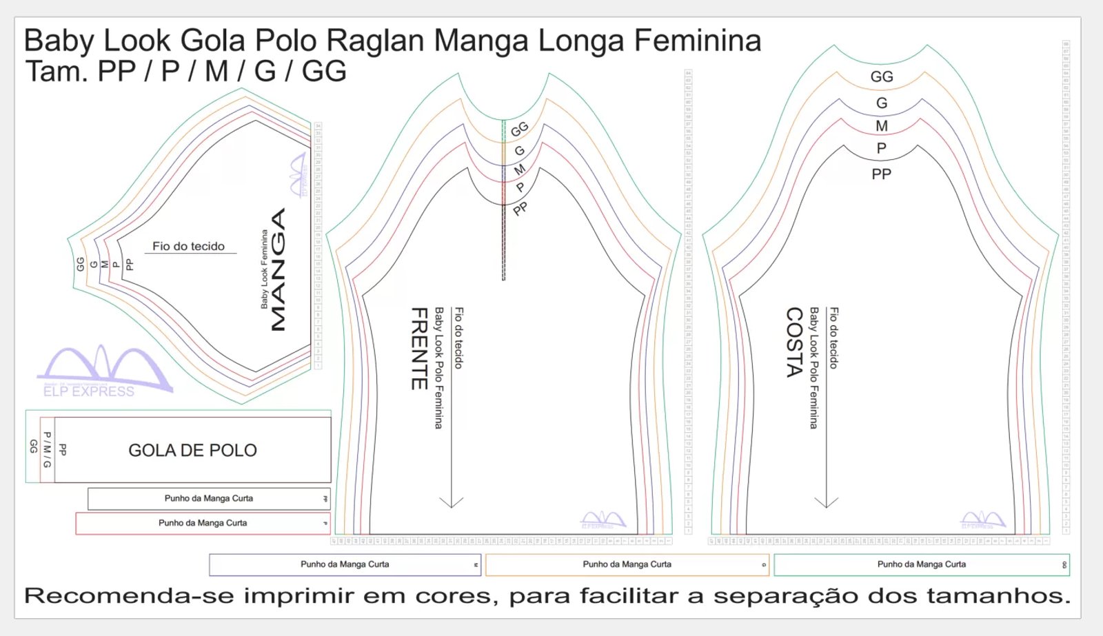 Molde de Costura Para Imprimir Camiseta - 17 - Baby look Gola Polo Raglan (GG ao G5 )