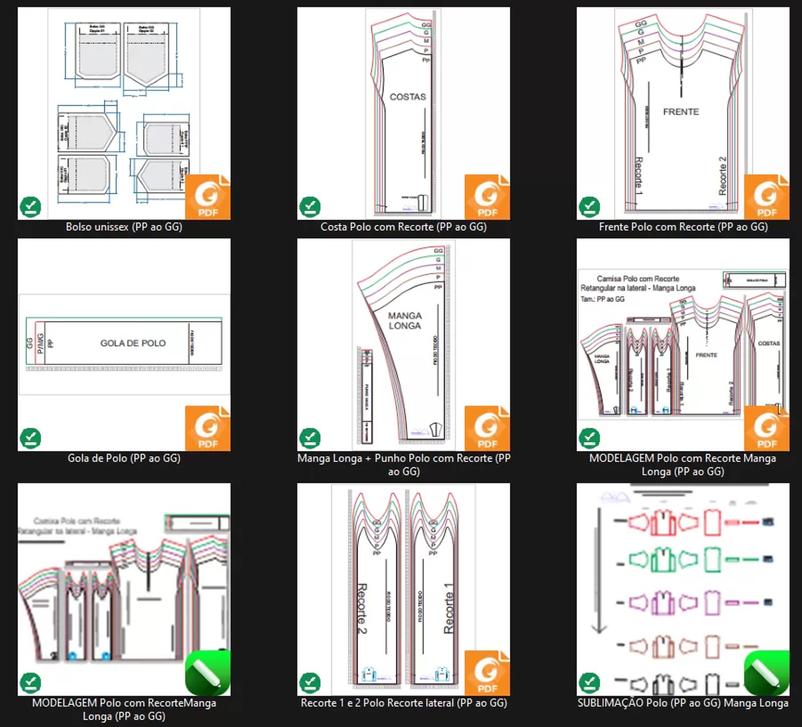 Molde de Costura Para Imprimir Camiseta - 17 - Polo Tradicional Recorte Retangular Lateral Manga Longa (PP ao GG)