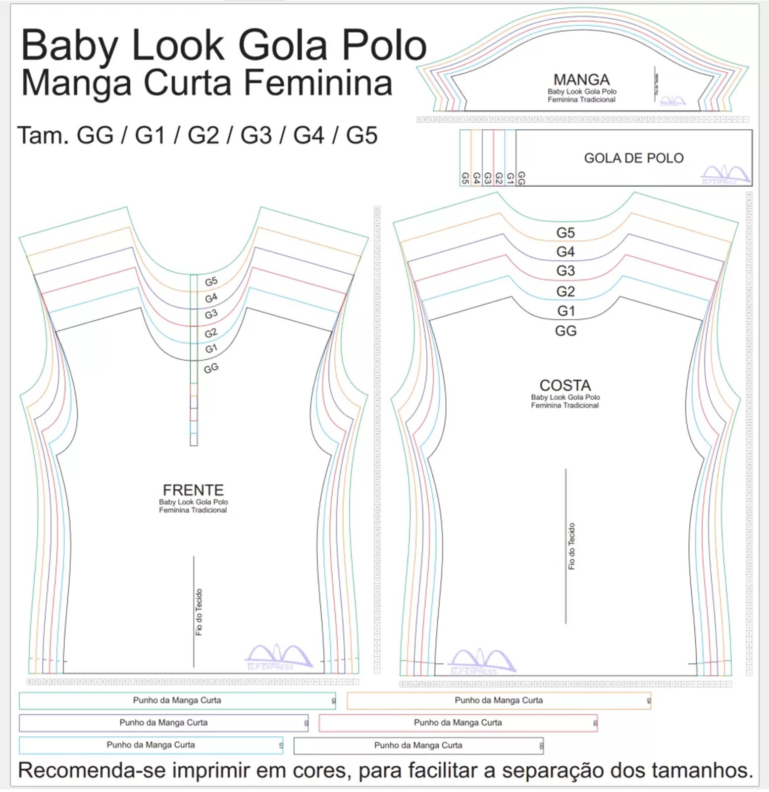 Molde de Costura Para Imprimir Camiseta - 23 - Baby look Gola Polo Tradicional (GG ao G5)