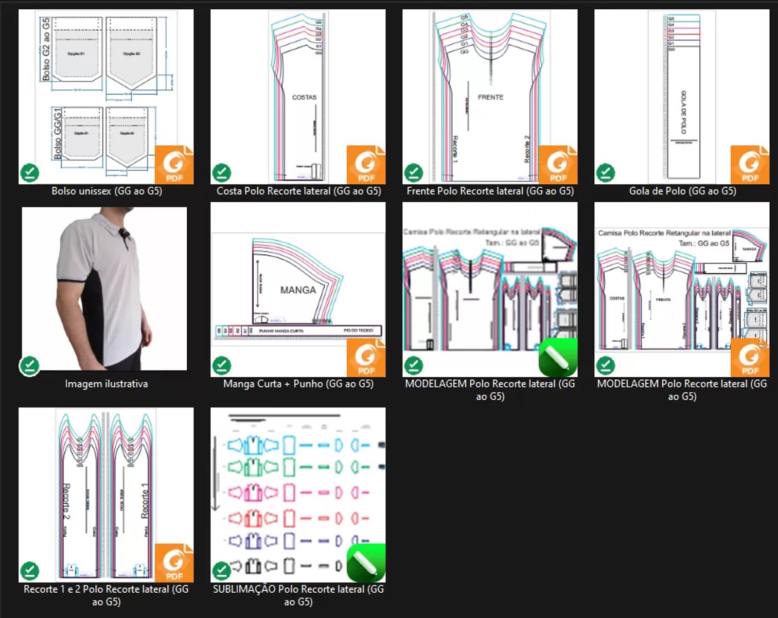 Molde de Costura Para Imprimir Camiseta - 24 - Polo Tradicional Recorte Retangular Lateral (GG ao G5)