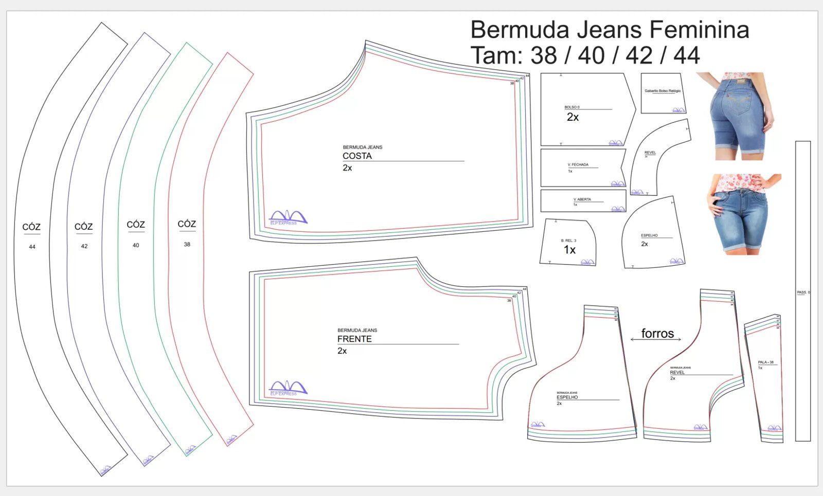 Molde de Costura Para Imprimir Camiseta - 25 - Bermuda Jeans Feminina (38 a 44)