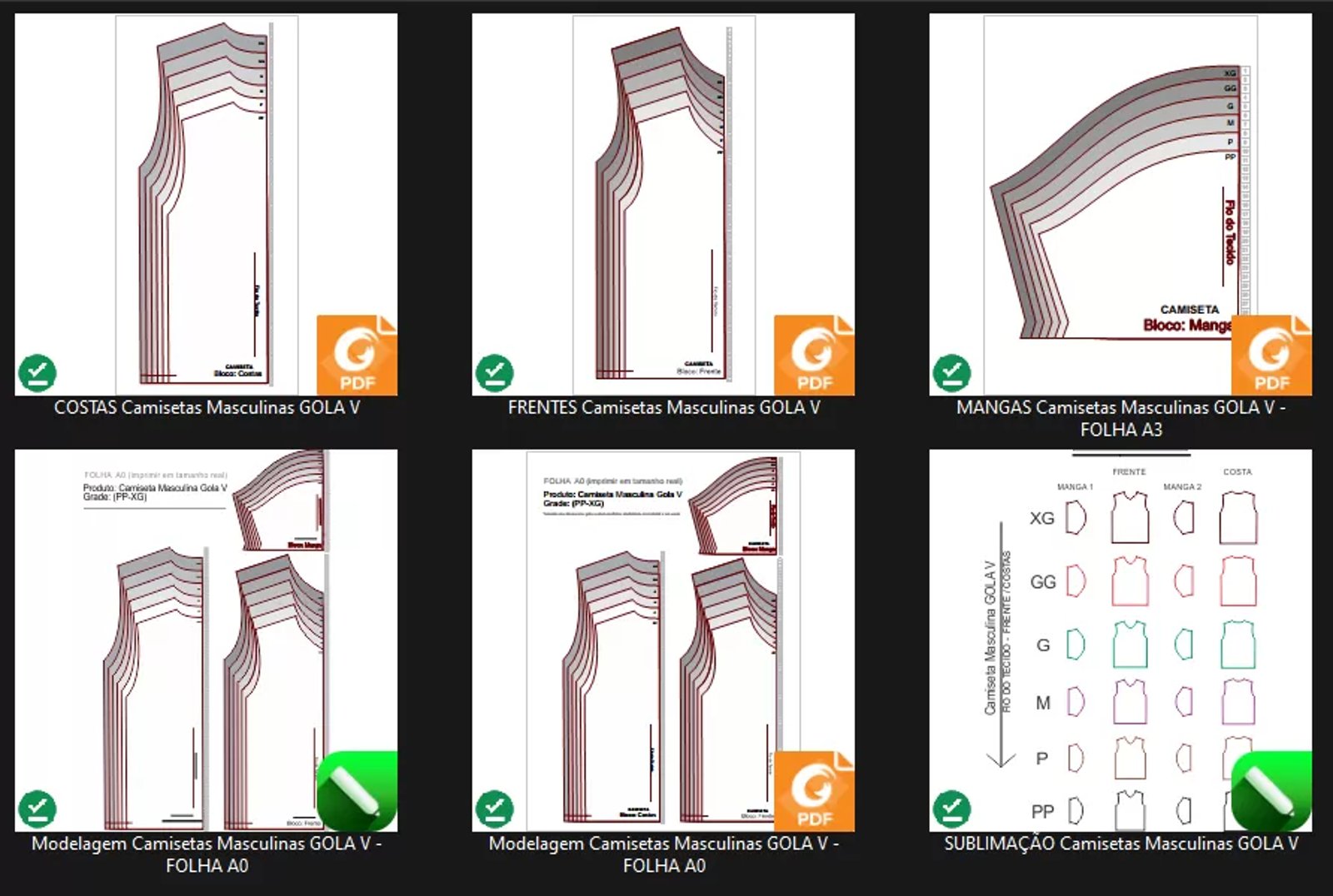Molde de Costura Para Imprimir Camiseta - 34 - Camiseta Tradicional Gola V (PP ao EG)