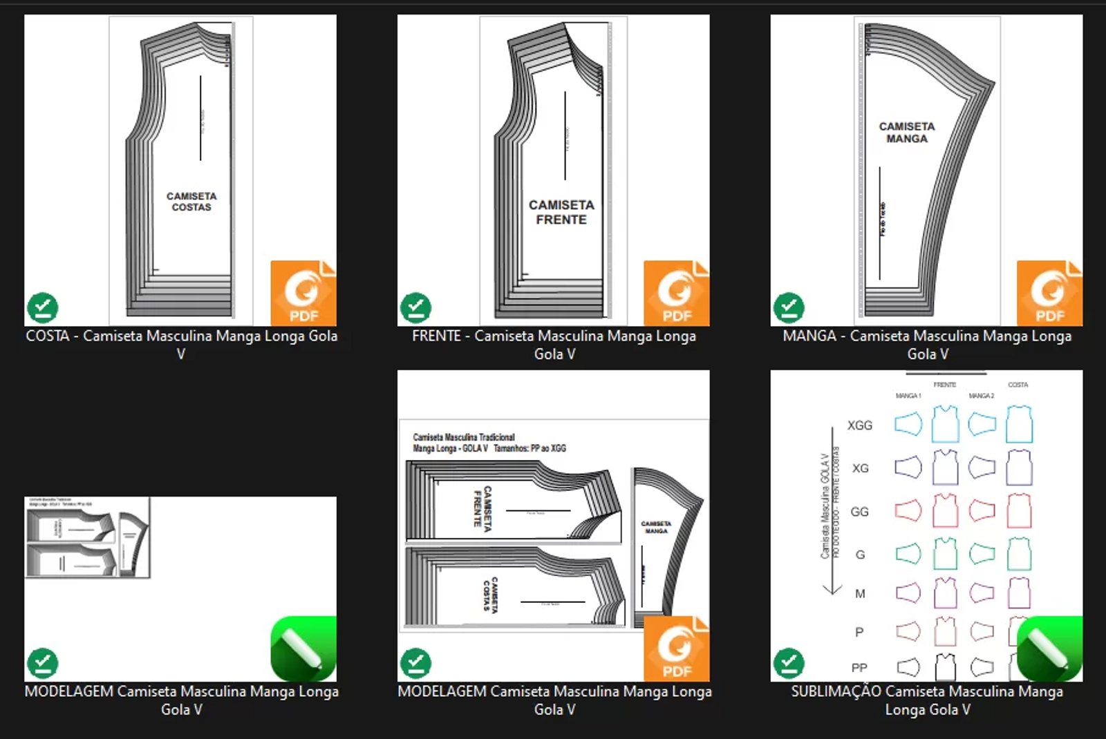 Molde de Costura Para Imprimir Camiseta - 35 - Camiseta Tradicional Gola V Manga Longa (PP ao XGG)