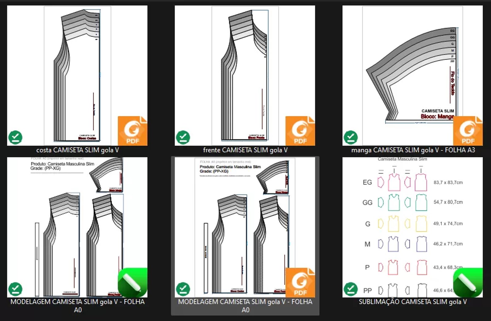 Molde de Costura Para Imprimir Camiseta - 38 - Camiseta Slim Gola V (PP ao EG)