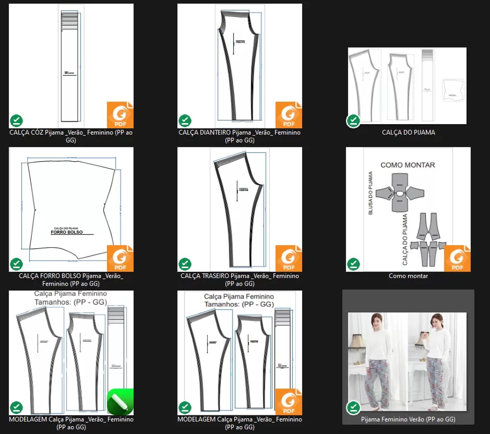 Molde de Costura Para Imprimir Camiseta - 44 - Calça de Pijama Feminino _Verão_ (PP ao GG)