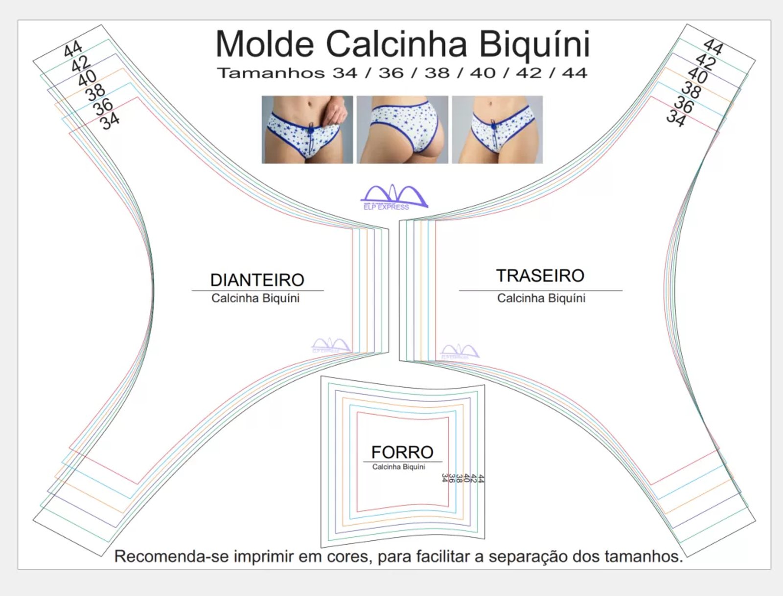 Molde de Costura Para Imprimir Camiseta - 69 - Calcinha Biquini (34-44)
