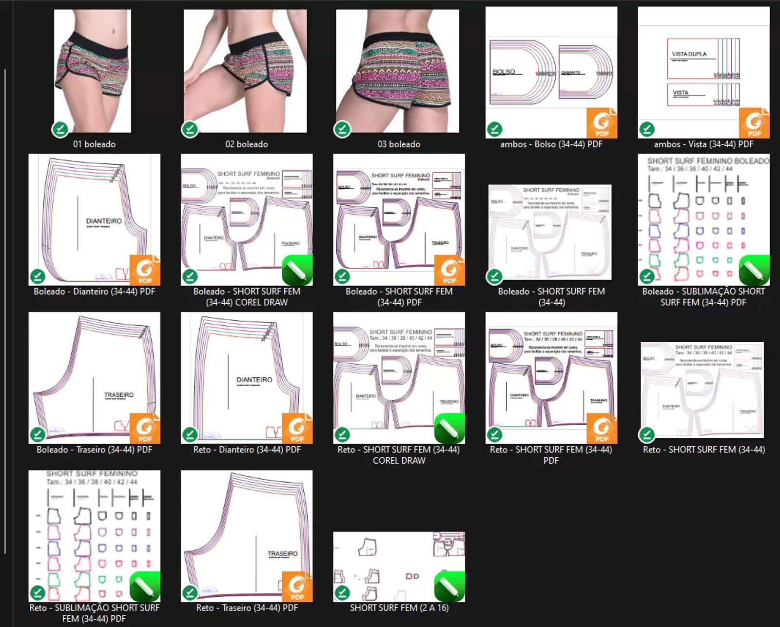 Molde de Costura Para Imprimir Camiseta - 81 - Short Surf Feminino (34-44)