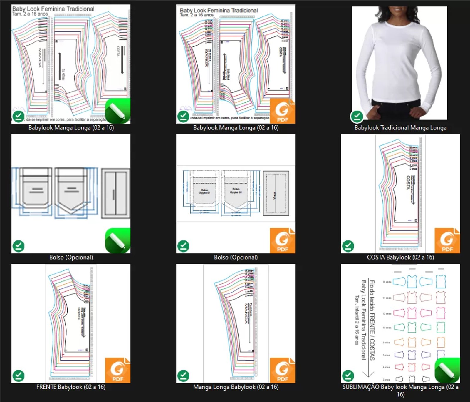 Molde de Costura Para Imprimir Camiseta Infantil - 08 - Baby Look Tradicional Manga Longa (02 a 16)