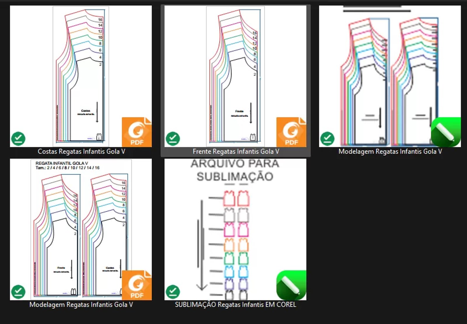 - O que recebo após a compra? O arquivo digital em formato CDR com o molde para a camiseta infantil regata.