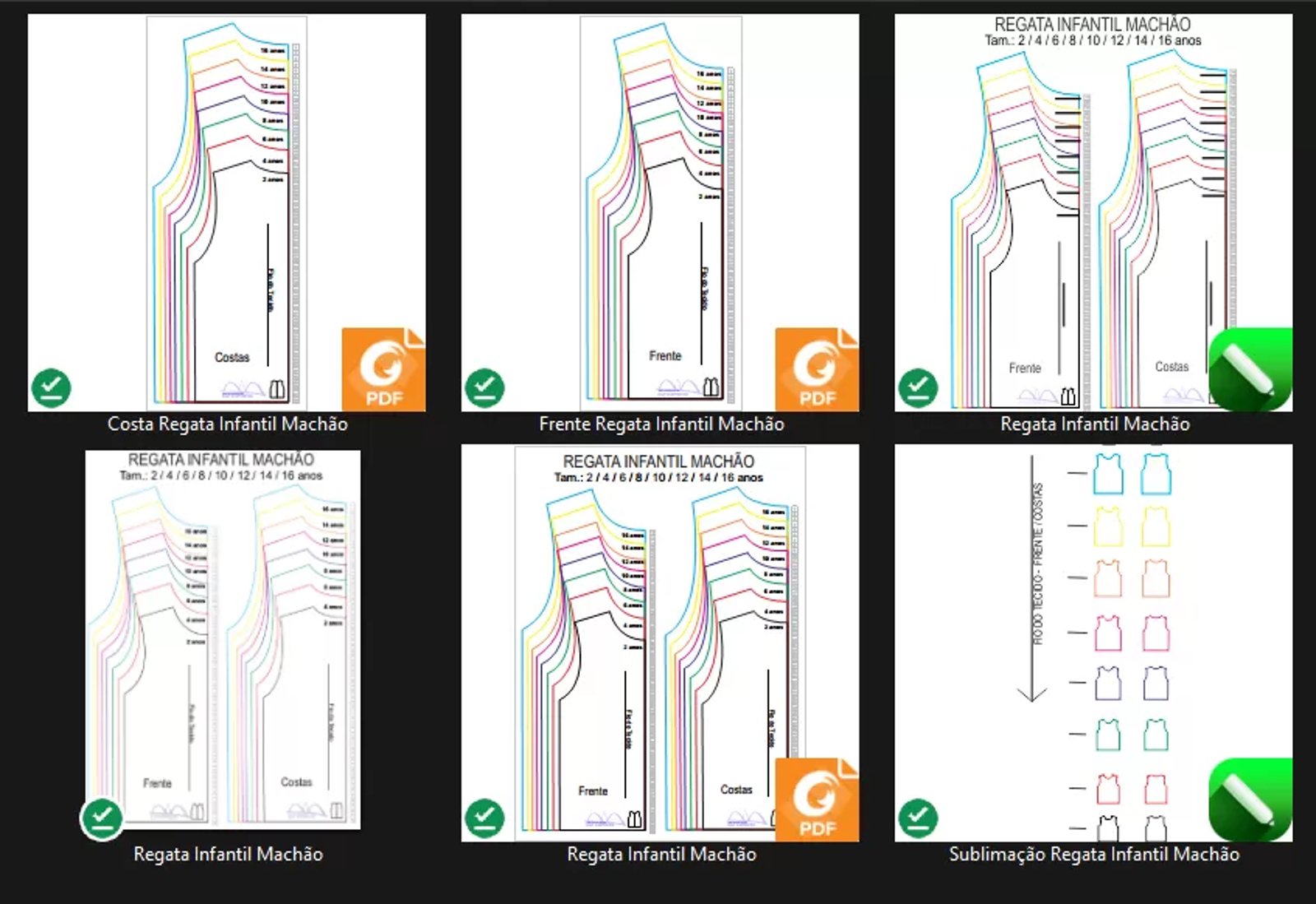 Molde de Costura Para Imprimir Camiseta Infantil - 30- Regata Infantil Uniforme Escolar (2 a 16 anos)