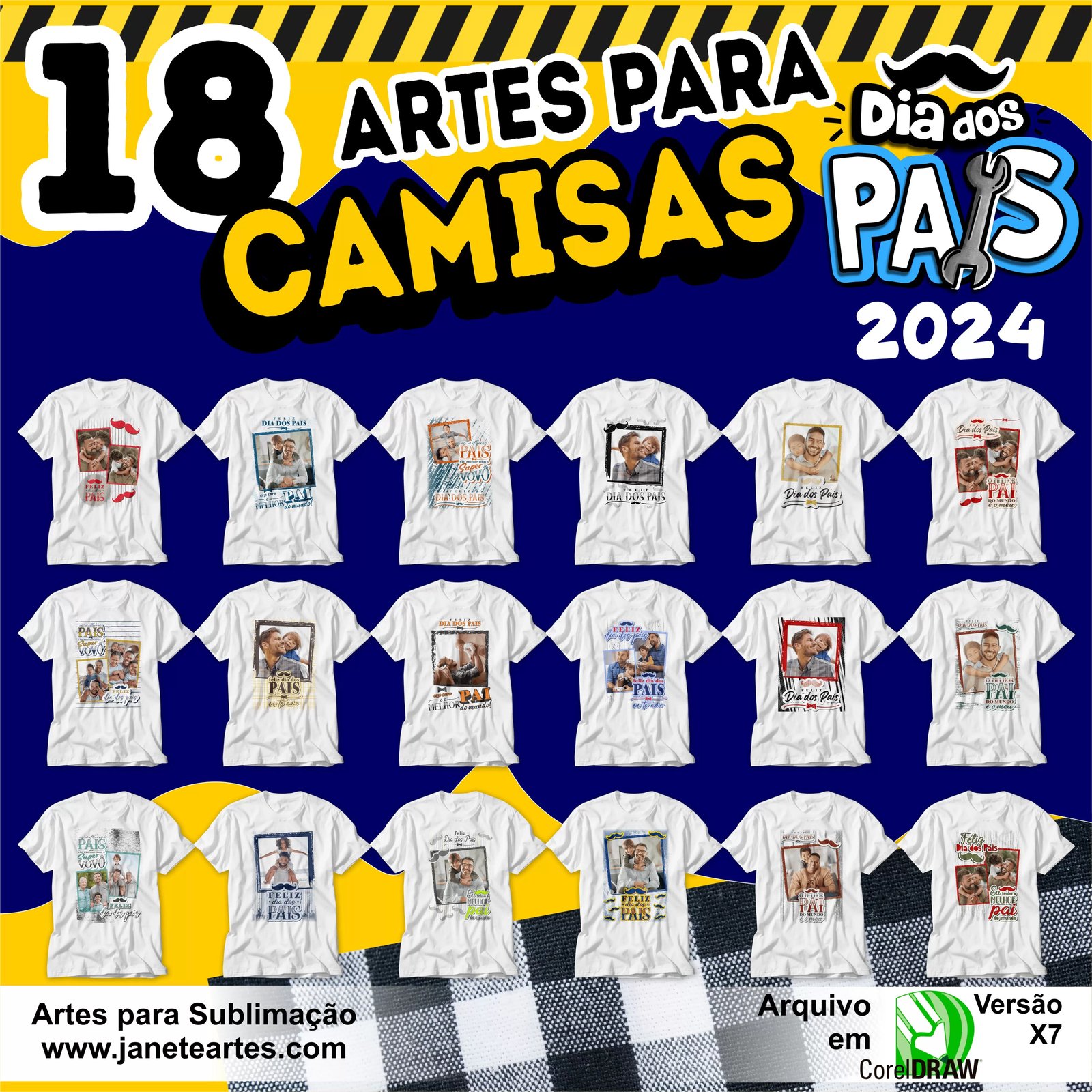 O Pacote Arte Estampa Camisa Dia dos Pais 2024 - 2025 é a escolha perfeita para quem deseja criar camisas e outros itens personalizados para celebrar esta data especial. Este pacote contém designs exclusivos e de alta qualidade, prontos para serem usados em diversas aplicações de sublimação. Seja você um profissional de personalização ou alguém que deseja surpreender um pai querido, este pacote oferece uma solução prática e criativa.