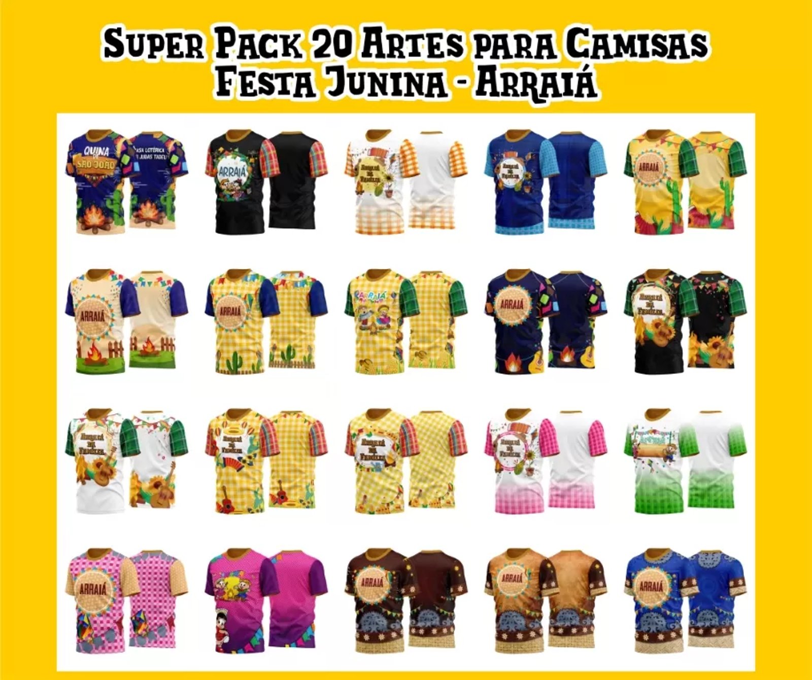 Pacote com 20 Artes para Camisetas Festa Junina com Sublimação Total 2025