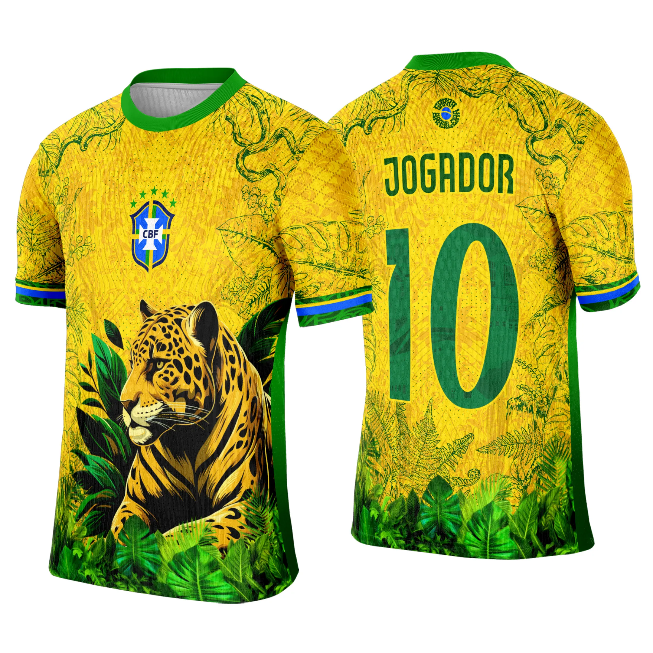 - Design com logo no peito e uma estampa grande nas costas, inspirado no Interclasse Brasil Onça;