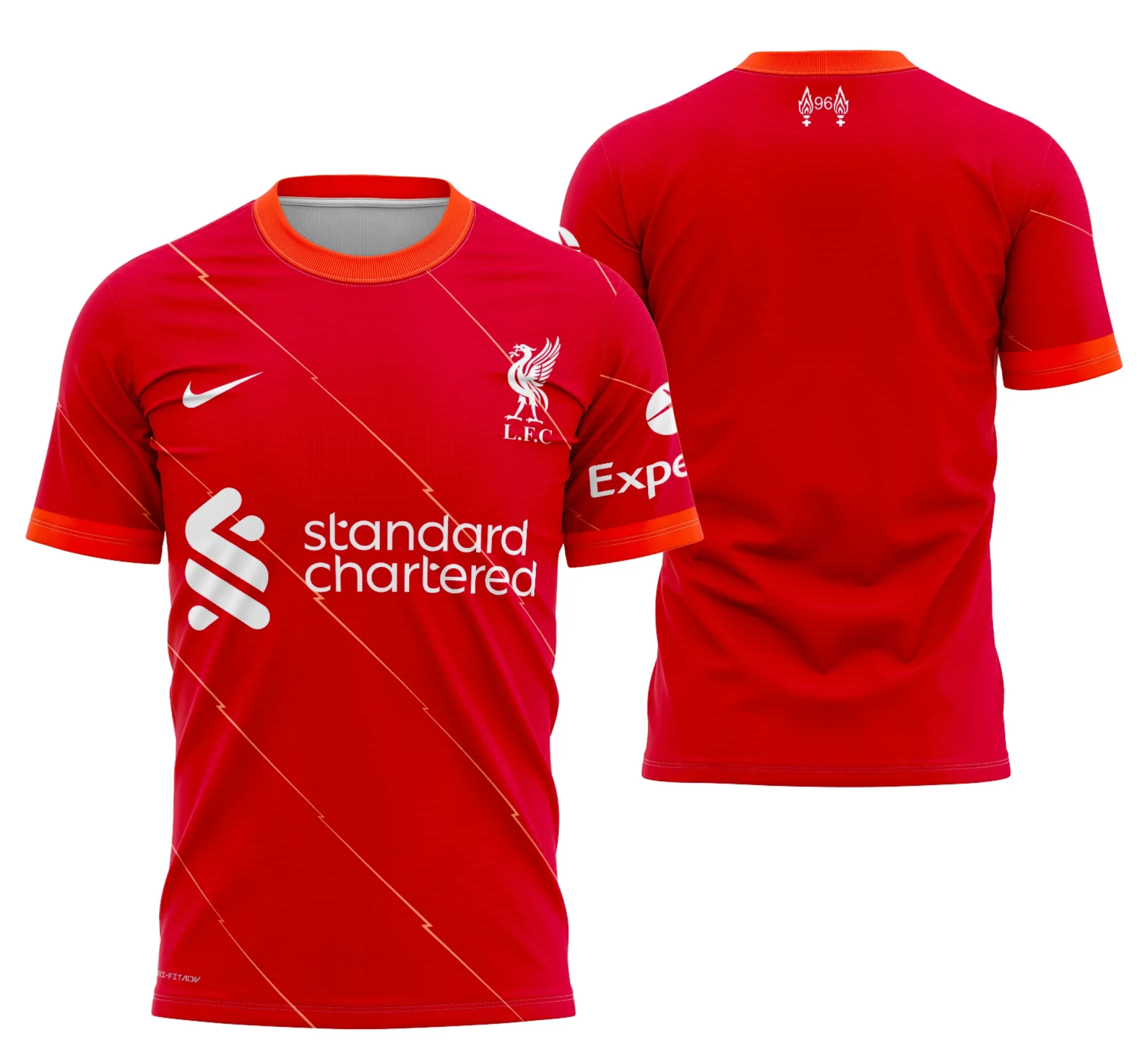 - Design detalhado do Liverpool Local 2021-2022, com logo no peito e uma imagem impactante nas costas