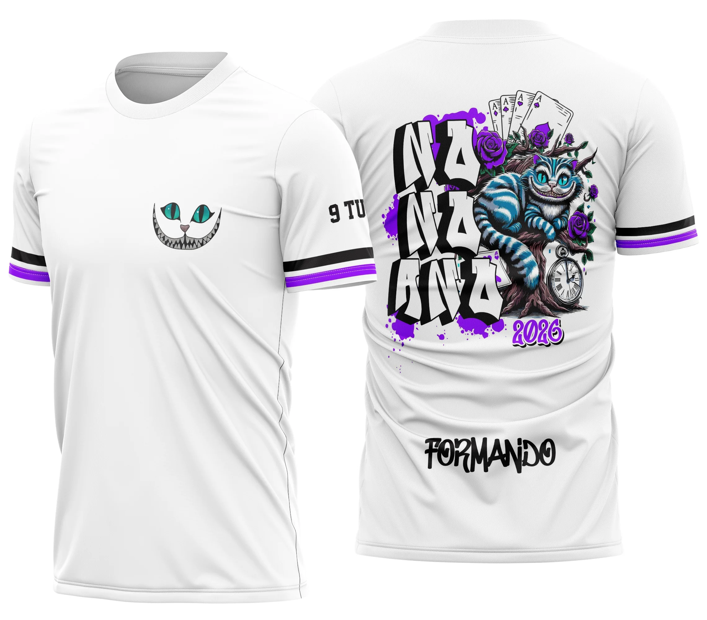 Personalize para a sua turma, evento escolar ou presente único para fãs de Alice no País das Maravilhas. A versatilidade é grande, da camiseta branca tradicional à preta moderna.