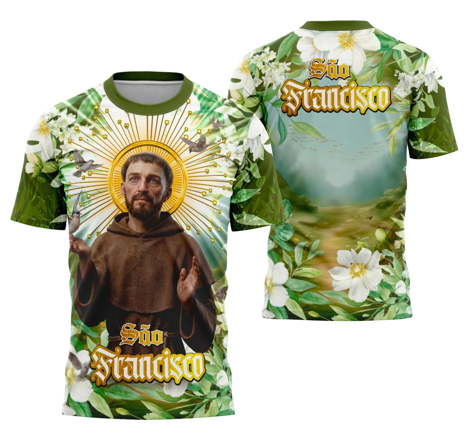 Este arquivo digital atende projetos voltados para públicos diversos. A Arte Camisa São Francisco de Assis Religião Católica pode ser utilizada em camisas femininas, masculinas e infantis, mantendo a identidade visual e o simbolismo religioso em todas as aplicações. É uma excelente escolha para grupos de oração, pastorais, romarias, festas de padroeiro e datas religiosas especiais.