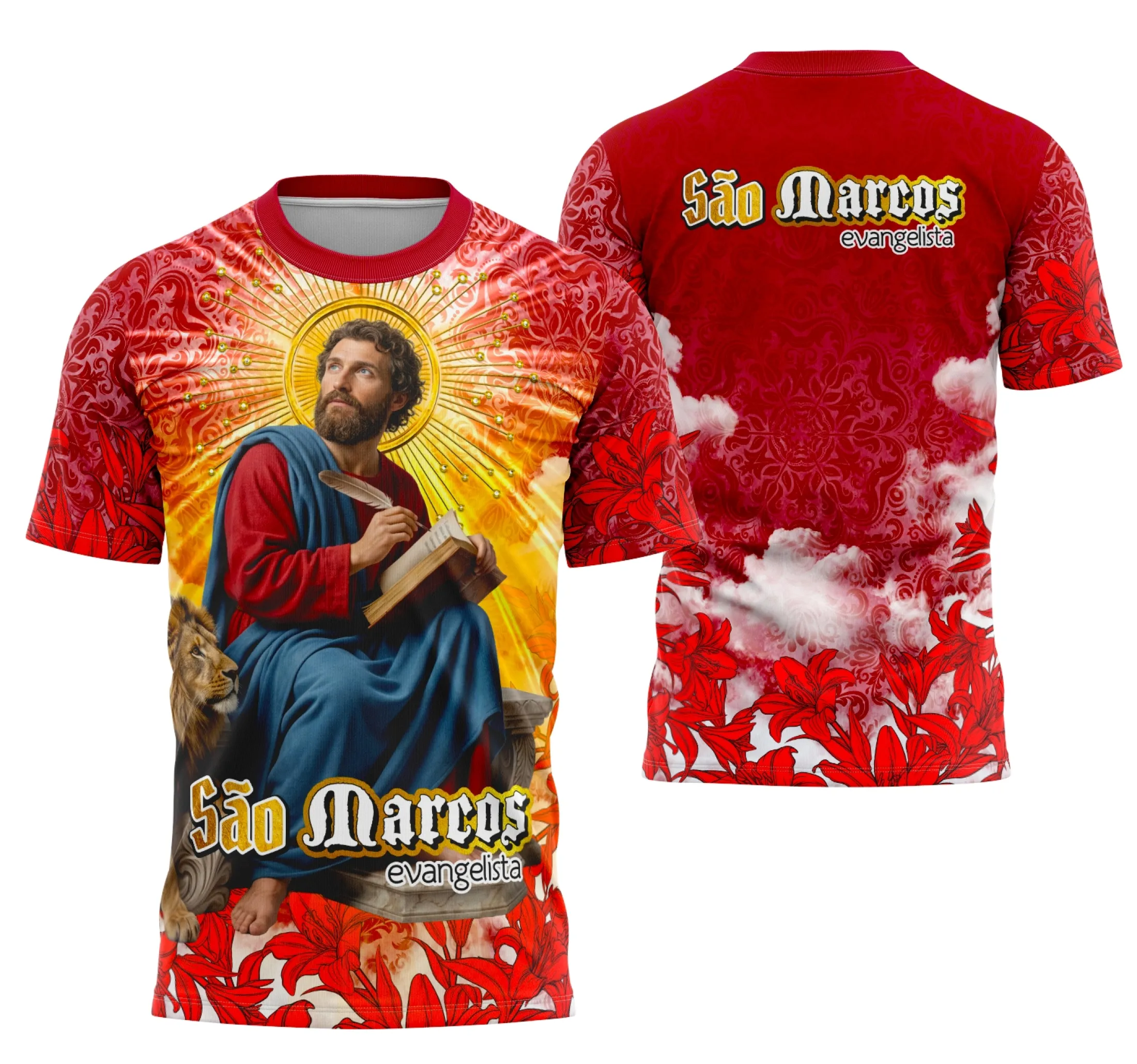 - O que está incluído no arquivo? Apenas o arquivo digital para impressão e personalização da camisa com a arte do São Marcos Evangelista.