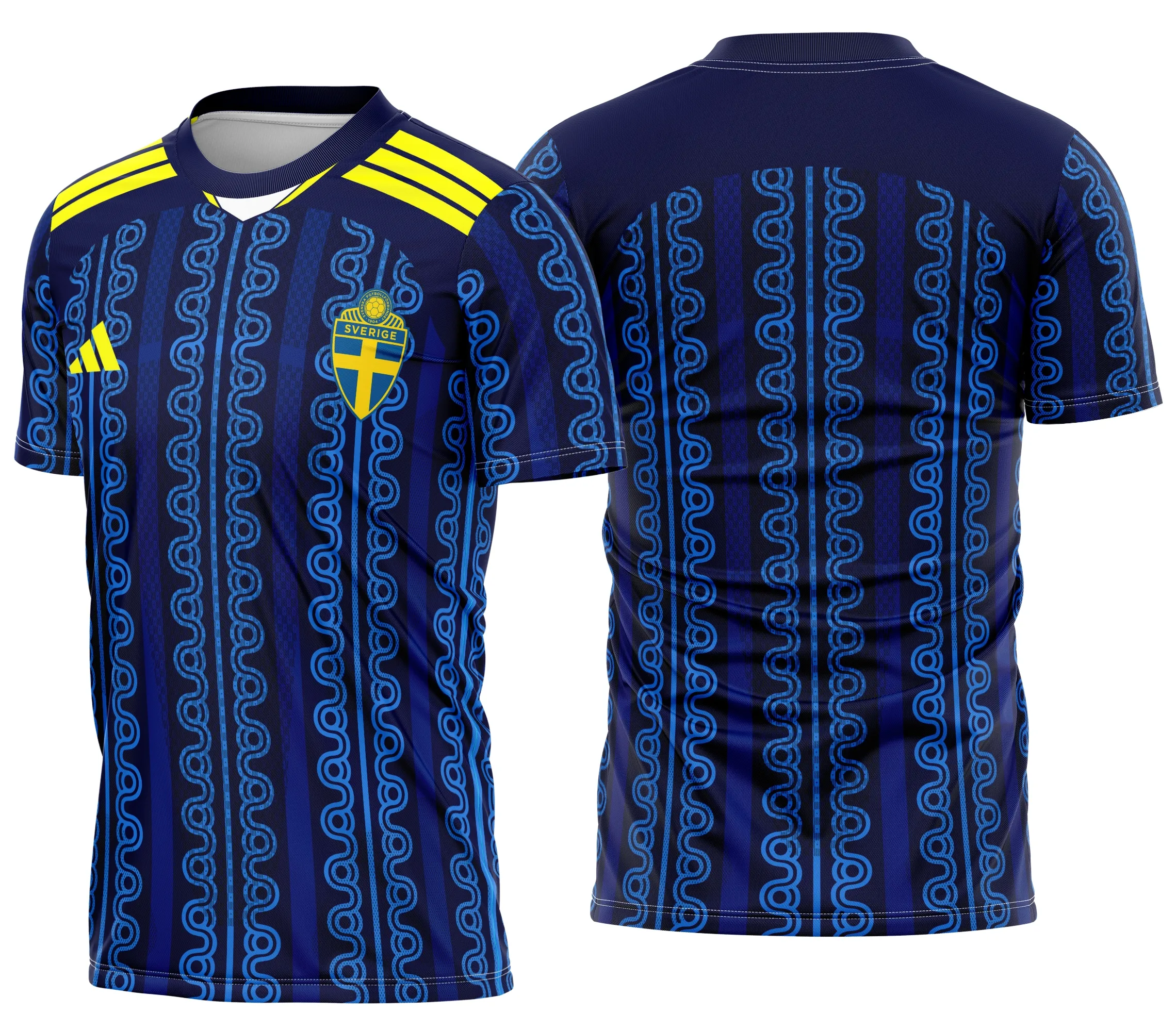 O Arte Camisa Suécia Kit Away 2026 By Zaugrafic traz um visual atual e detalhado para quem deseja criar peças únicas. Com logo no peito e uma estampa grande nas costas, o design remete ao kit oficial, ideal para projetos esportivos, identidade visual e branding de times.