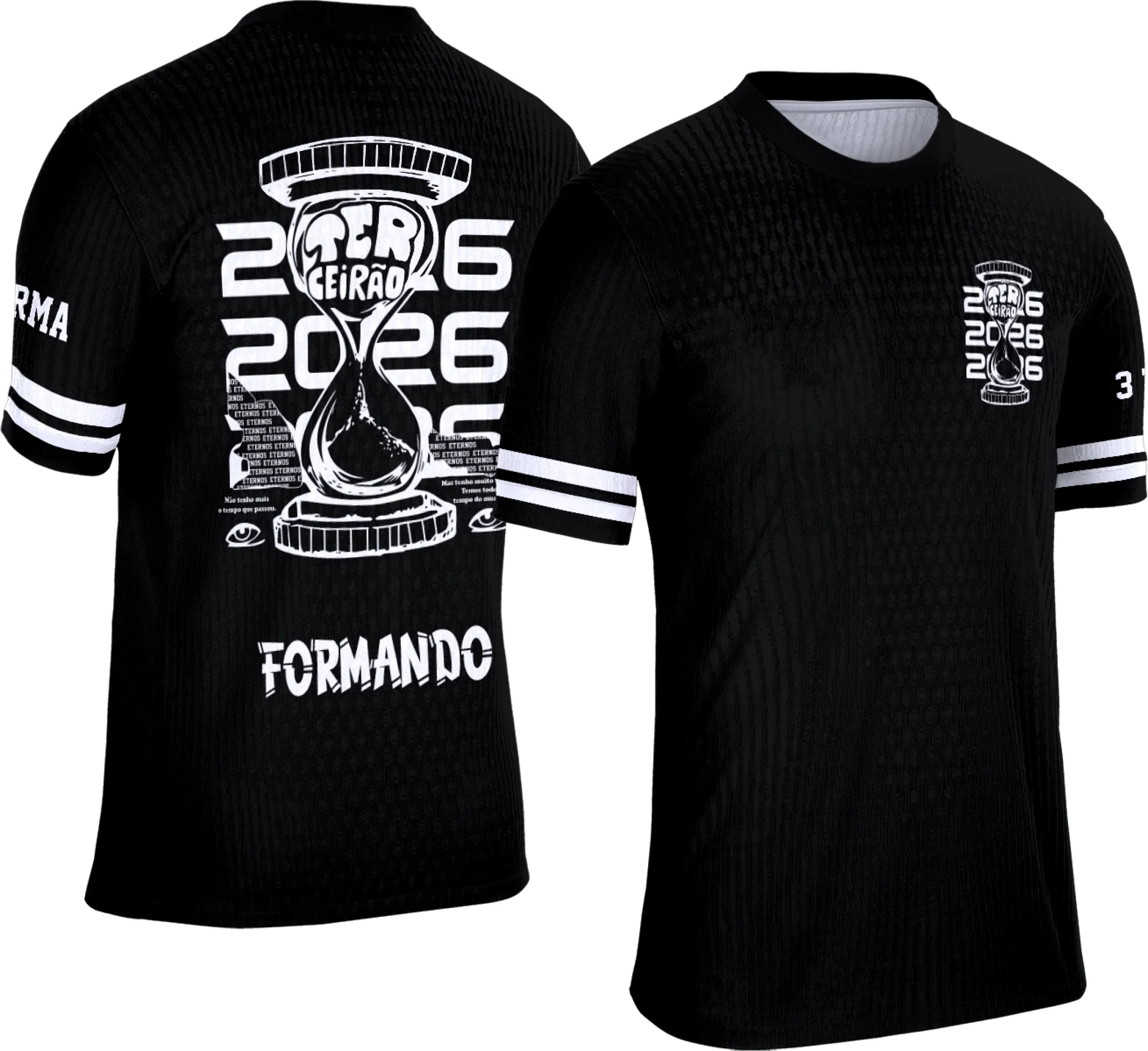 Imagine o sentimento de uma turma prestes a se formar, cheia de sonhos e memórias que marcaram a vida escolar. Foi assim que surgiu a inspiração para a Arte Camisa Terceirão Ampulheta: para eternizar essa fase única, trazendo o símbolo da ampulheta como representação do tempo que passa, mas que deixa marcas eternas. Uma arte que conecta cada estudante ao sentimento coletivo da despedida e da vitória.