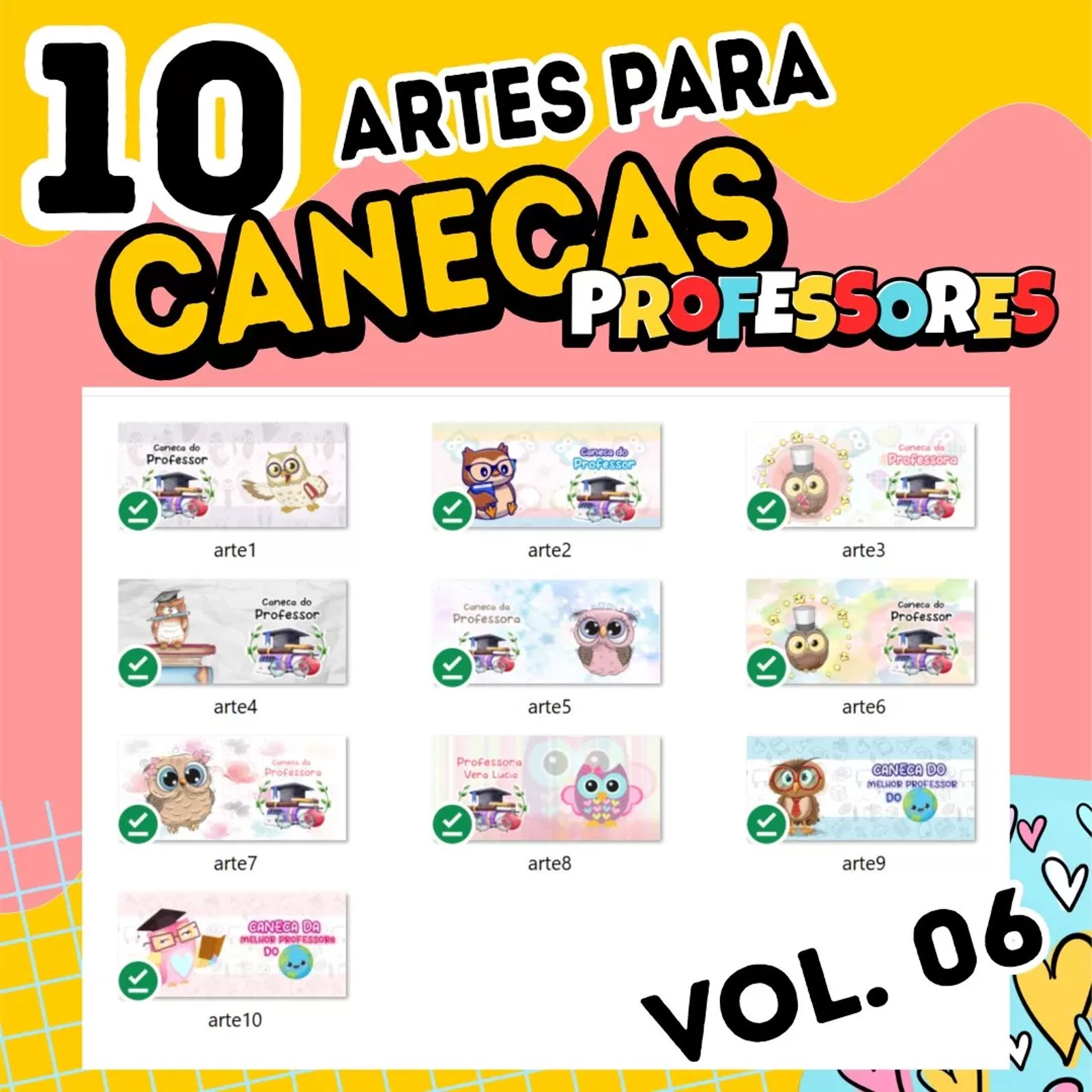 kit 10 Artes Pack Avulso Artes CANECAS Professores 2023 Vol 6 Cdr Editável